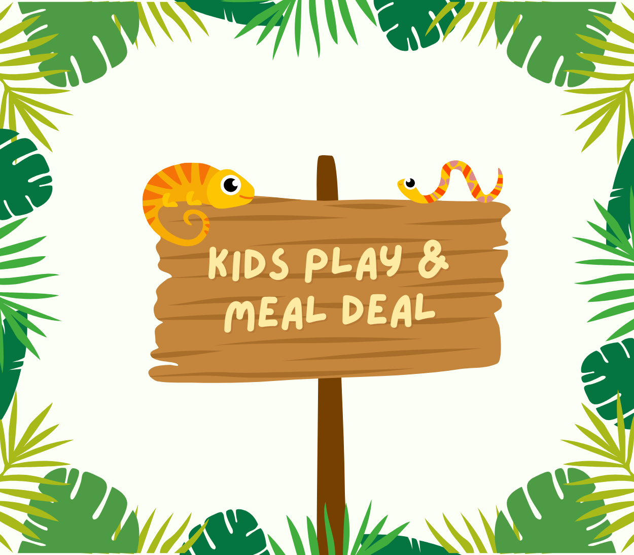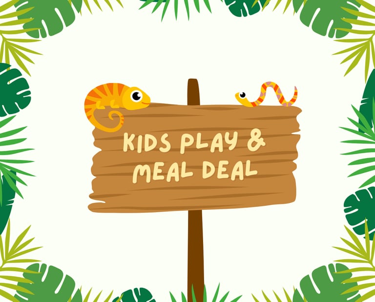 For just £6.00, your little one can enjoy fun-filled soft play, plus a tasty kids meal (choose from any of our jungle boxes) to refuel after all that adventure.